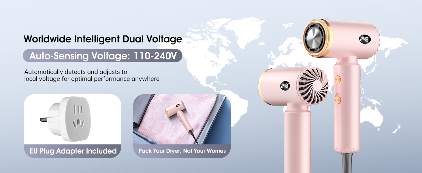 Travel Hair Dryer, Dual Voltage Mini Ionic Blow Dryer for Fast Drying, Compact Lightweight Hair Dryer with Magnetic Diffuser for Home & Travel, Portable Hairdryer International 110-240V (Pink)